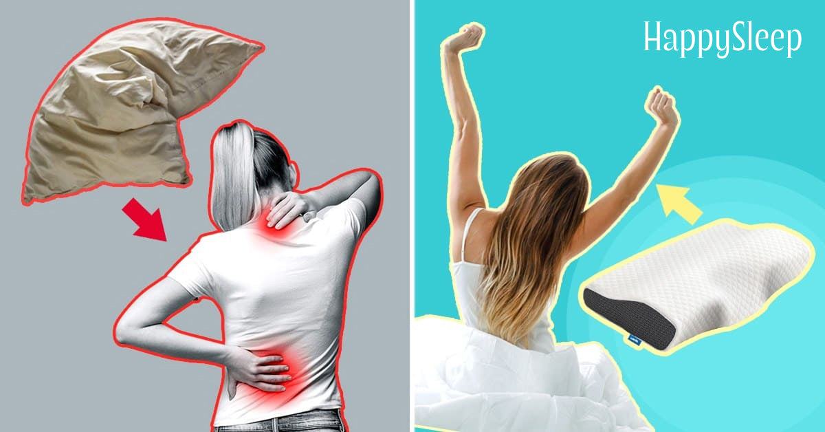 Personer, der lider af hovedpine – HappySleep giver bedre søvn og restitution + denne ortopædiske konturpude placerer dit hoved i den rigtige position, hvilket kan lindre din hovedpine.